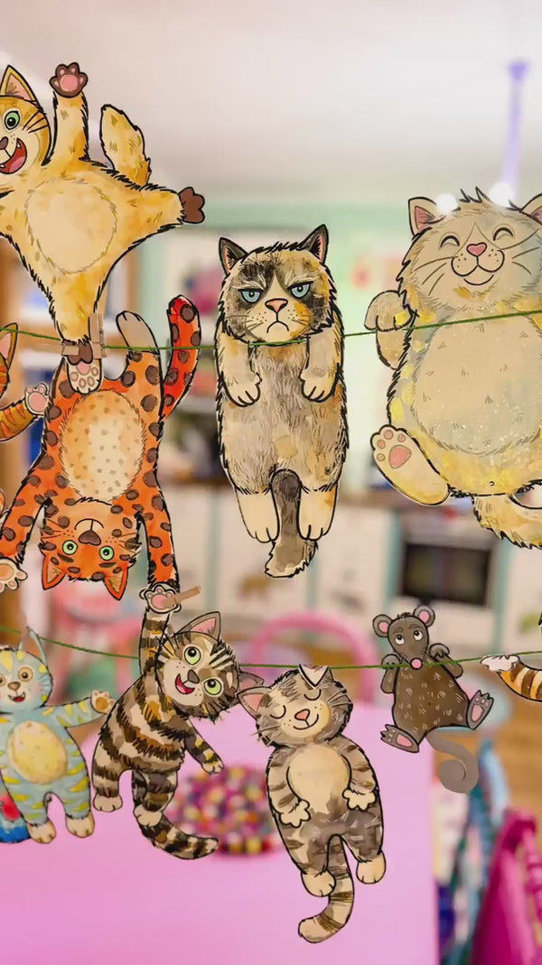 Ein Download mit 14 Katzen und 6 Mäusen, die Du an ihren Pfoten/Beine an einer Schnur aufhängen kannst.